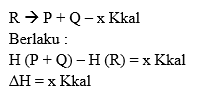 yang trkandung dalam suatu zat disebut panas dalam atau entalpi dan dinyatakan dengan simbol H. Selisih antara entalpi reaktan dan entalpi hasil pada suatu